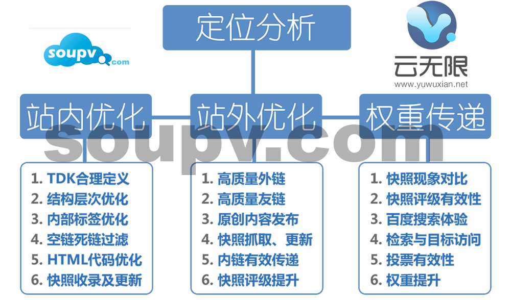 首先,任何人做SEO必须要有一些杀手几SEO工具,例如云营销addpv.com,aizhan或站长站(chianz)这些工具可帮助优化师对网站质量及关键词排名状态进行分析。SEO优化结果源于基础,所以要有一个好域名和好的服务器运行环境是必要条件。